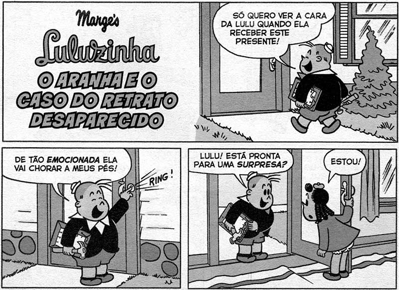 Sob o comando de Stanley a Luluzinha sofreu transformações importantes, começando pelo elenco de moleques encapetados. A eterna rivalidade de gênero atingiu seu ápice com o cube de Bolinha (Tubby no original), aquele em “que meninas não entram” e muitas das aventuras mostram os esforços de Luluzinha e Aninha para dar o troco nos meninos ou conseguir entrar no clube, com resultados para lá de hilariantes. Stanley ainda criou para os moleques o dia em “que eles não dirigiam a palavra às meninas”, se não estou errado na primeira segunda feira do mês, e a pirralhada levava isso tão a sério que não falavam nem com as suas própias mães! Só que as histórias não se limitavam a isso. Tínhamos também aqueles momentos em que Bolinha se transformava no detetive conhecido pela alcunha do Aranha para resolver casos em situações em que Luluzinha estava enrascada.O engraçado era que o detetive gorduchinho sempre encasquetava que o pai de Luluzina (senhor Moppet no original) era o culpado e, por incrível que pareça ele sempre estava certo!