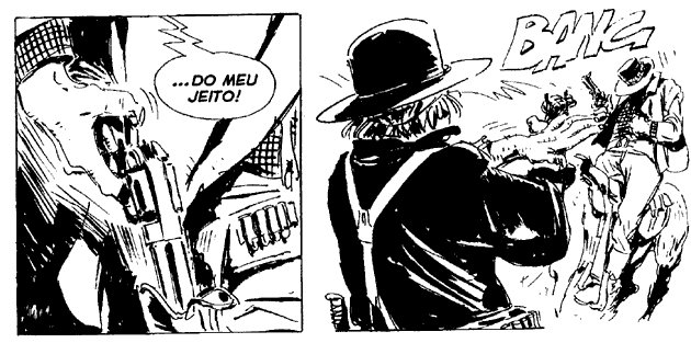 Como fã de histórias de caubóis, tenho que confessar que aprendi a admirar o trabalho arguto e equilibrado da dupla Berardi e Milazzo nas histórias de Ken Parker. Não é uma tarefa fácil já que os enredos brilhantes e cheios de humanidade do primeiro são muitas vezes ofuscados pelo traço nervoso do grande Ivo Milazzo, para mim um dos grandes das histórias em quadrinhos ao lado do incomparável Alex Toth. E é que sua linha fina e muitas vezes incompleta e nervosa que se alterna com grandes pinceladas de preto não é aceita por aqueles leitores que se acostumaram a um desenho mais certinho como o de Civita ou de Ortiz, só para citar alguns dos mestres do gênero. Não, o traço de Milazzo exige que o leitor complete a cena com a imaginação, numa releitura que exige muito conhecimento das técnicas cinematográficas e do western como universo narrativo.