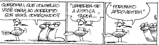 Latino Eis de novo, L. Fernando Veríssimo (ou LFV como ele gosta de assinar). “A preguiça é a mãe destas cobras...eu queria fazer uma historinha que enchesse minha coluna diária no jornal, em Porto Alegre...como tenho um problema algo incomum para um desenhista - não sei desenhar - escolhi as cobras porque elas são fáceis de fazer. A cobra é só pescoço...” Canceladas na virada do milênio, após 14 anos de existência, sob a desculpa de “estar sem tempo para escrever os roteiros”, deixaram a seção de quadrinhos dos jornais brasileiros meio sem graça.