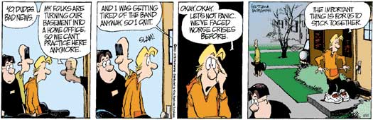 Zits Mario Latino Criada pelo cartunista Jim Borgman e pelo roteirista Jerry Scott, Zits é o que se pode chamar da última grande "daily strip" na tradição de Bringing up Father ou Blondie e conta o dia-a-dia de um casal de classe média na dura tarefa de criar e educar um adolescente rebelde e folgado, se é que isso é possível. A tira, que começou a ser publicada em 1997, hoje é distribuída para mais de 700 jornais. Boa parte desse sucesso deve ser creditado ao traço elegante de Borgman.